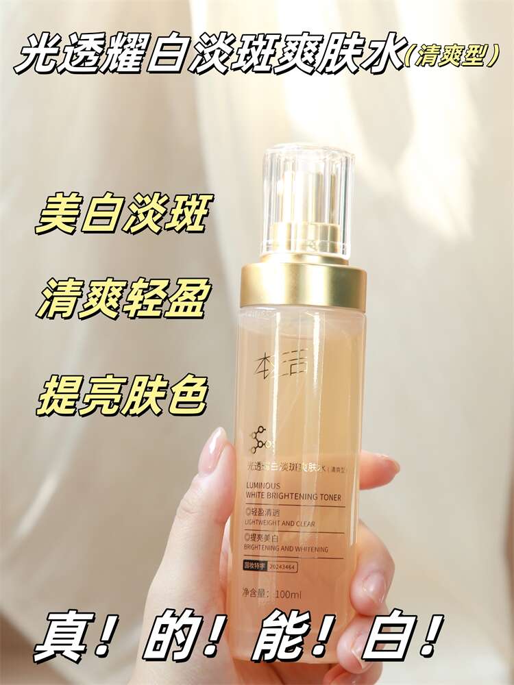 本活光透耀白淡斑爽肤水,它不是一瓶简单的爽肤水,它是一场肌肤的旅程。它带你从暗沉中走出,带你回到那个透亮光洁的自己。无论你在何时何地,它都在轻声细语地告诉你——你值得被呵护,值得拥有最美的光彩。