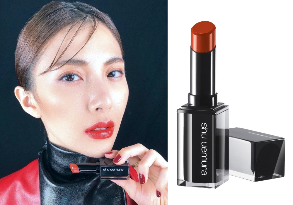 植村秀携手渡边直美展现“BR784巨美棕红”,更推出全新红黑色限定包装。